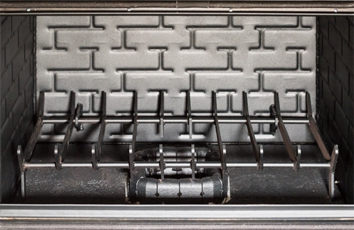 The thermo-fireplace requires simple cleaning of the combustion chamber ashes, thanks to the folding grate.