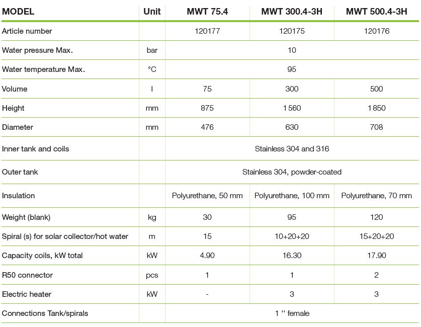 120175 MWT 300.4-3H multifunction tank 300 l, 3kW electric heater, 2x20+1x10 m coil price 2150 eur +VAT