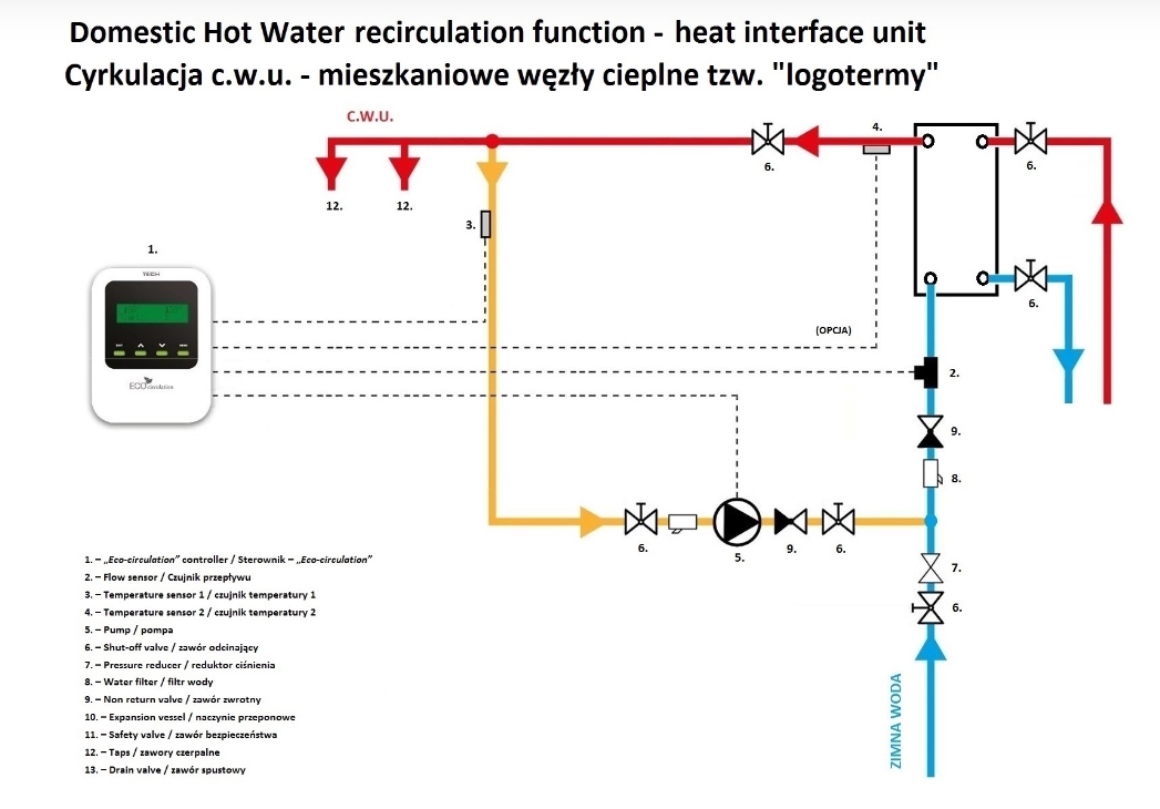 - protection against overheating (starting the domestic hot water pump),