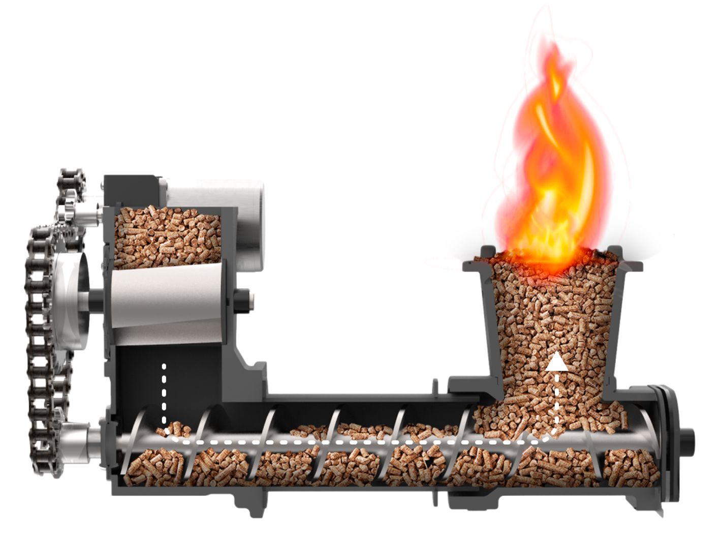 Puu+pellet, võimsus 15,5 kW, pelletimahuti 69 l (ca 45 kg), põlemiskambri mõõdud 840 x 380 x h 440 mm