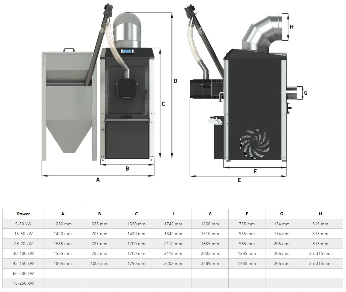 Mudelid  30, 50, 70, 100, 150, 250 ja 300 kW