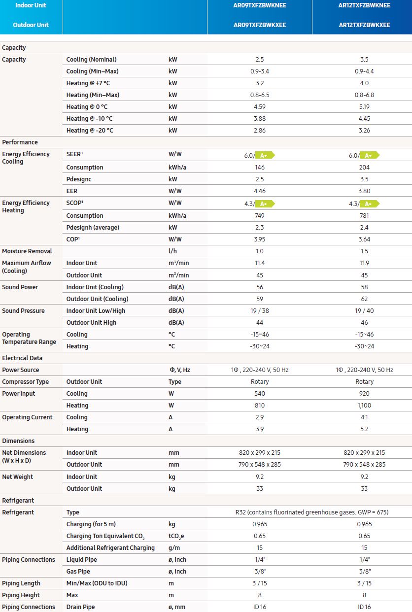 3,2 (0,8 - 6,5) kW, AR09TXFZBWKNEE + AR09TXFZBWKXEE, R32, Wifi