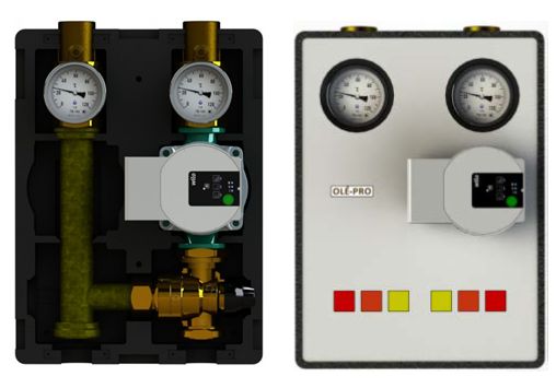OLE-PRO põrandakütte segusõlm termostaatilise segistiventiiliga 20-43 °C
