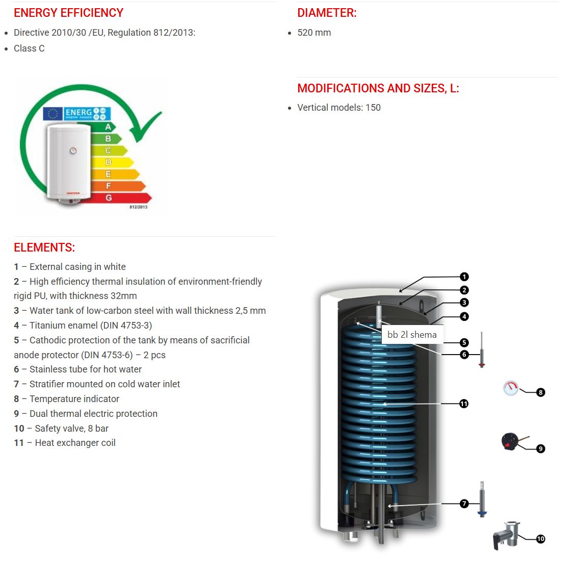 Burnit SUNSYSTEM BB S1 – 2L seinapealne soojaveeboiler 150 l