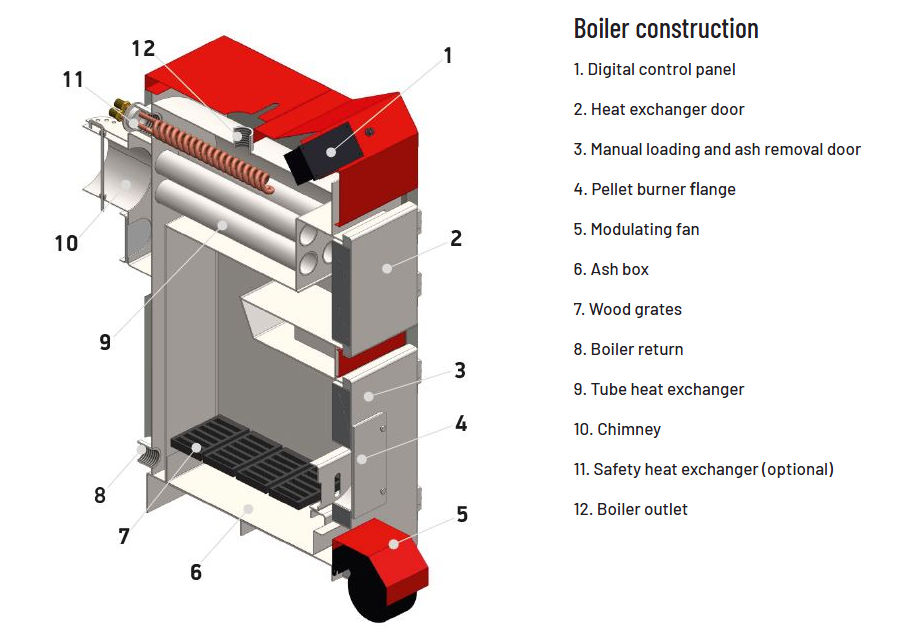 Võimalus tellida topelt ustega katel, puu+pelletiküte.