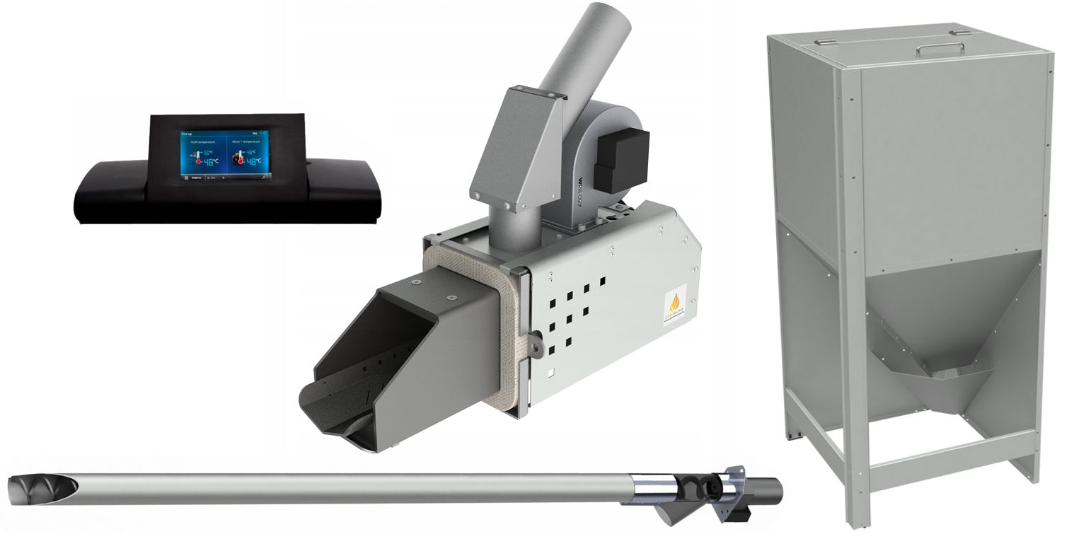 Komplektis on põleti, automaatika ja etteandetigu 1,5 m